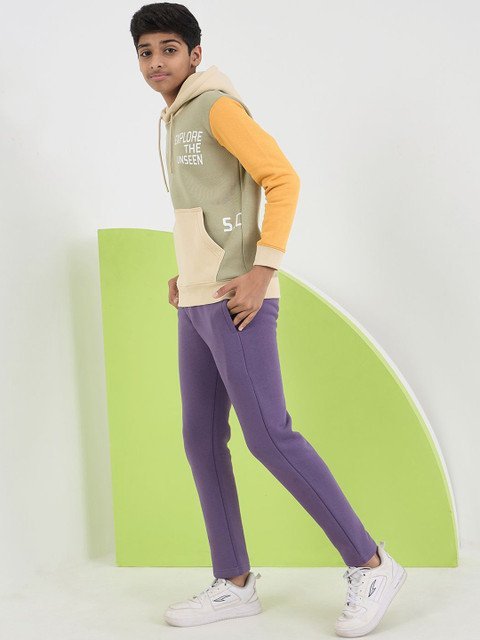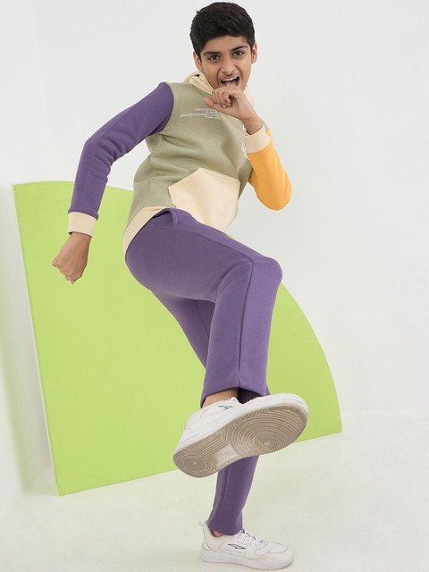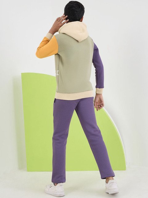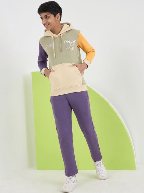 Grey, beige and purple printed sweatshirt, has a hooded, long sleeves