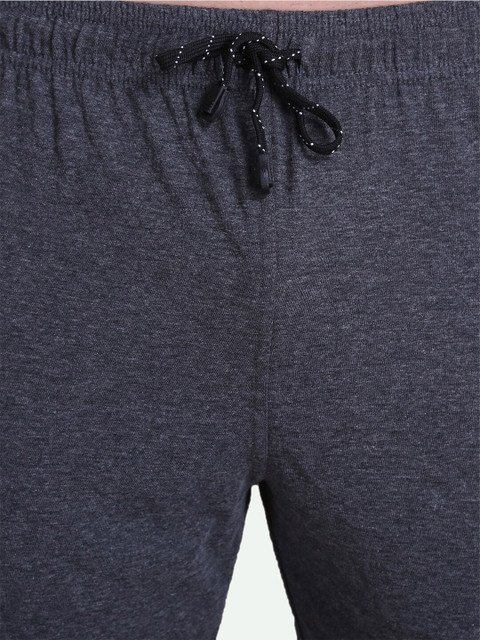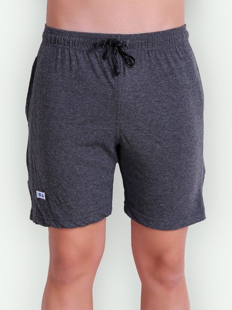Charcoal solid mid-rise lounge shorts, has 3 pockets, slip-on closure