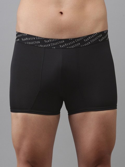 Van Heusen Innerwear Men Black Solid 4 Way Stretch 3D Logo Waistband Tactel Trunk IHIQTR1SXD30045
