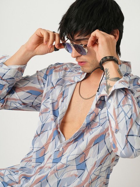 VASTRADO Men Classic Cutaway Collar Abstract Printed Slim Fit Casual Shirt