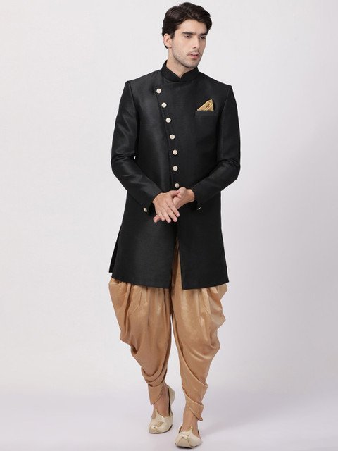 VASTRAMAY Men Black Self-Design Sherwani Set
