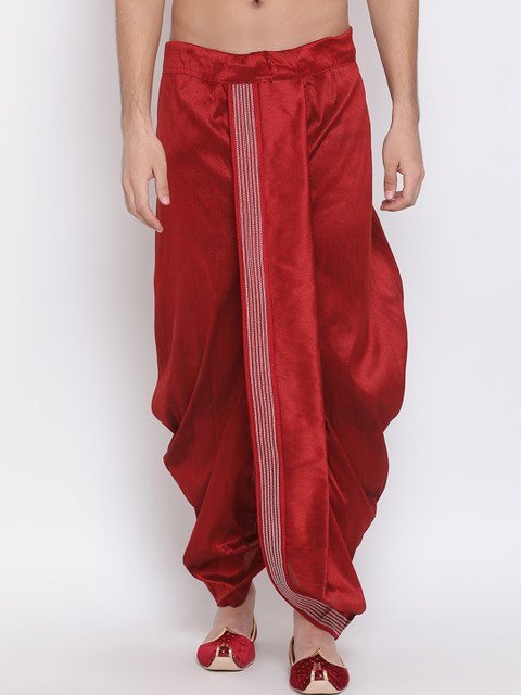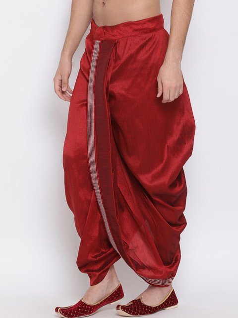 VASTRAMAY Men Maroon Embroidered Silk Blend Dhotis