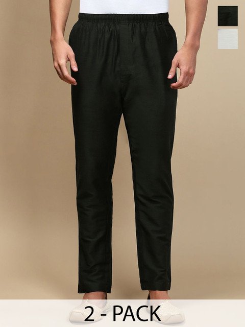 WHITE HEART Pack Of 2 Woven Mid-Rise Pyjamas