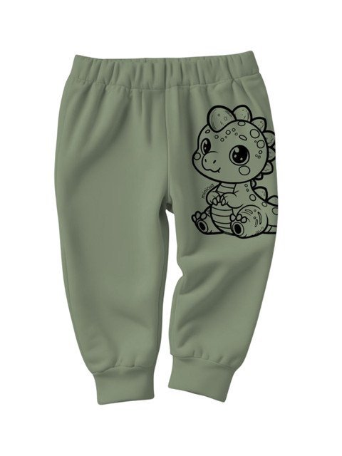 Green dinosur printed regular-fit mid-rise jogger, has an elasticated waistband with slip-on closure and cuffed hem