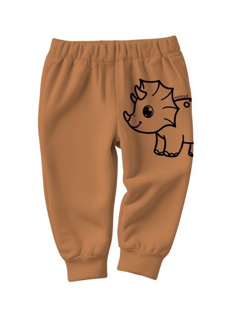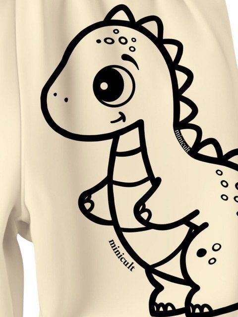 Beige dinosur printed regular-fit mid-rise jogger, has an elasticated waistband with slip-on closure and cuffed hem